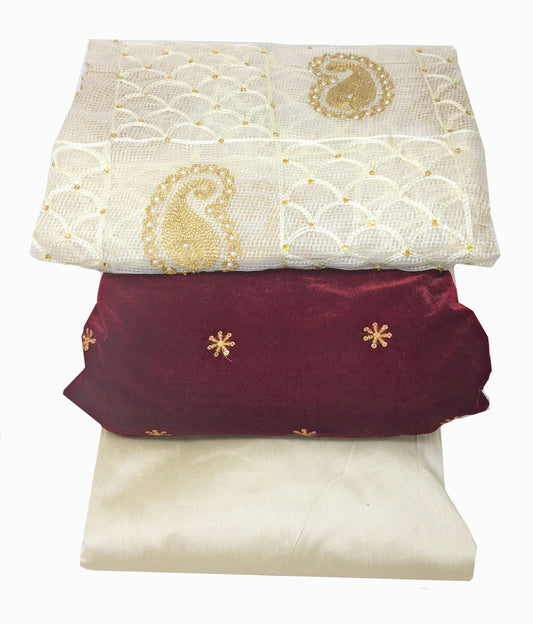 Designer Maroon Velvet Dress Material with Gold Dupatta and Gold Bottom