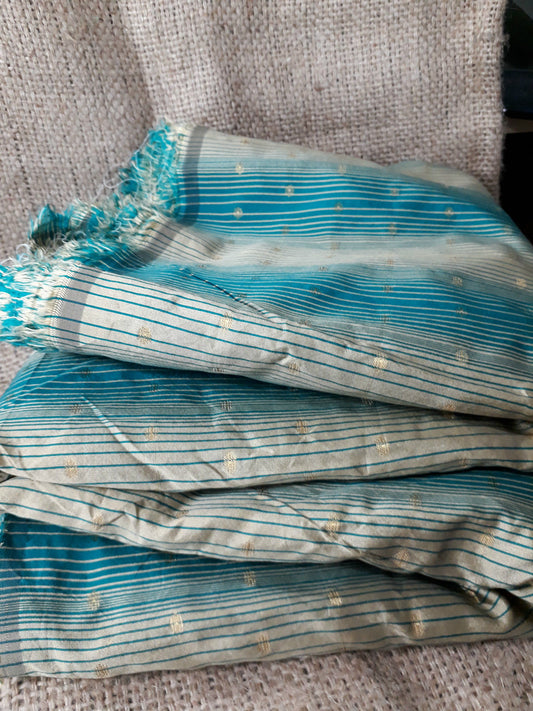 Dress Fabric by metre Faux Silk green gold stripe n embroidery wedding material