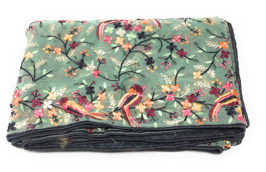 Designer Dupatta With Embroidery In Light Green Colour