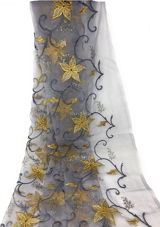 Designer Dupatta With Embroidery In Grey Colour