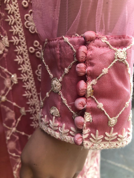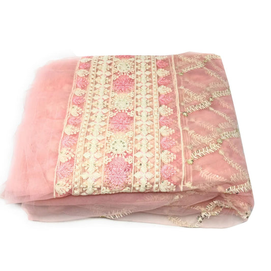 Designer Net Fabric Online Light Pink, Lucknow Embroidery