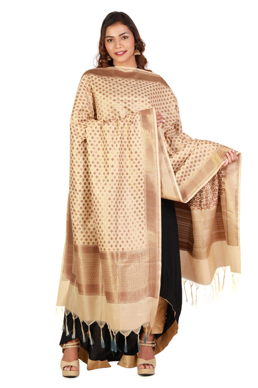 Banarasi Silk Dupatta In Ghee Cream Colour - Pure Katan SIlk