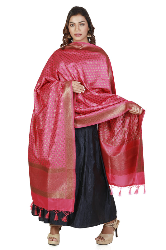 Banarasi Silk Dupatta Price In Rani Pink Colour- Pure Katan SIlk