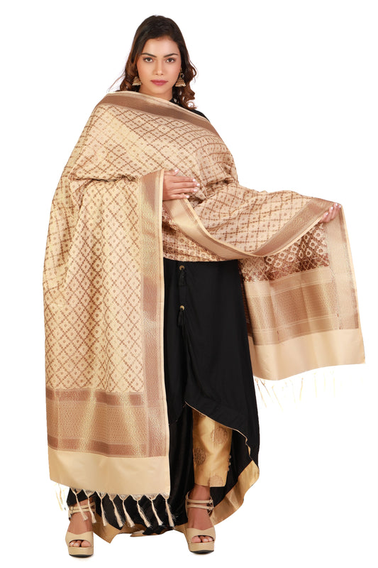 Banarasi Silk Dupattas Online In Ghee Cream Colour - Pure Katan SIlk