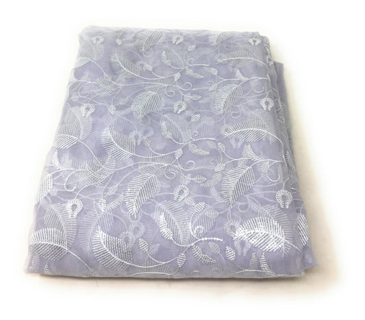Organza Fabric Material in Lavender Embroidery Work