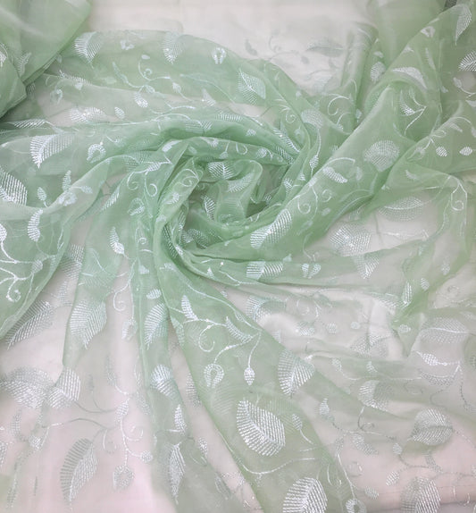Organza Fabric Material in Pastel Green Embroidery Work