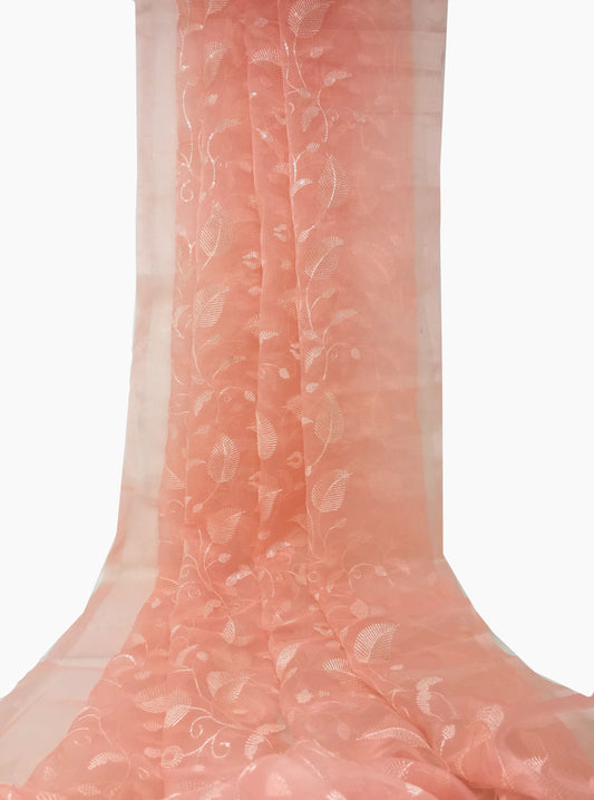Organza Fabric Material in Peach Embroidery Work