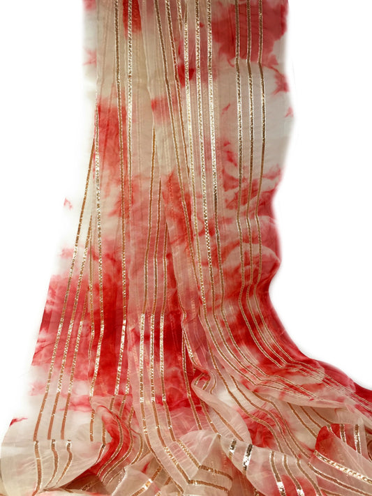Organza Fabric Material in Pink, Red, Orange, Embroidery Work