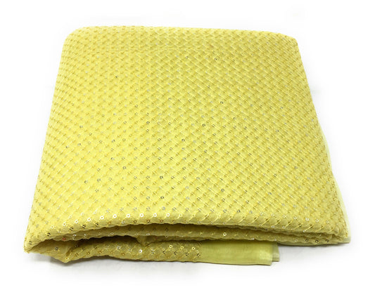 Organza Lemon Yellow Embroidered Fabric Material - By Meter
