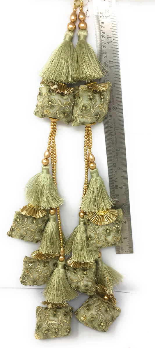 Pastel Beige tassel design for lehenga, Embroidery Work - Set of 2