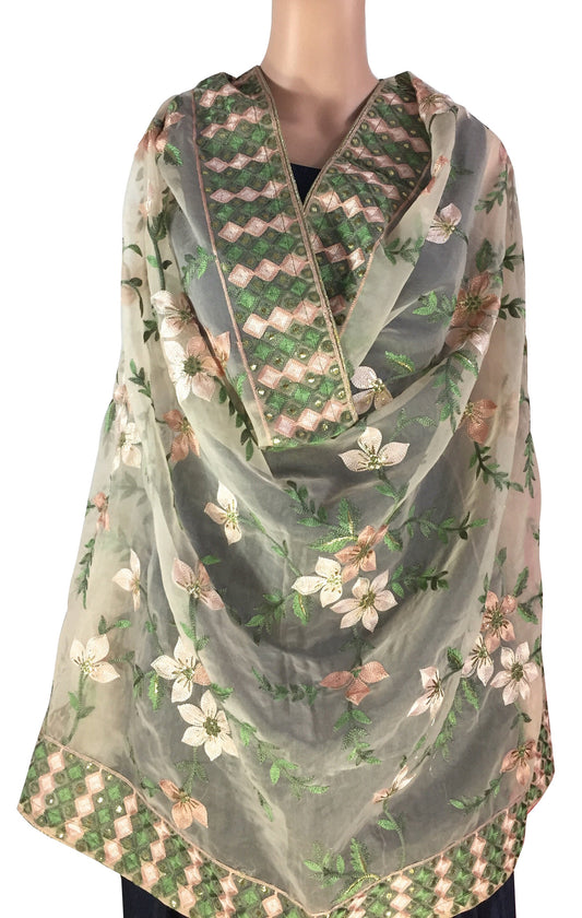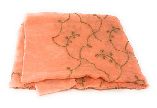 Peach Heavy Organza Dupatta with Embroidery