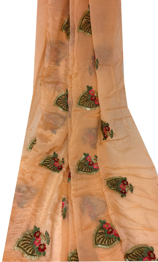 Peach Embroidered Chiffon Fabric Material