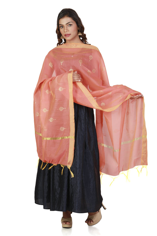 Peach Gold Print Dupatta In Chanderi Fabric