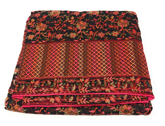 Black Embroidered Saree Border Trim - 9 Meter Roll