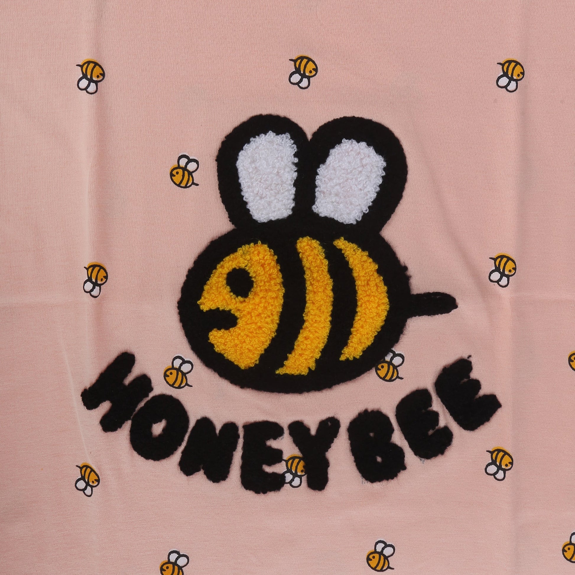 This Pink Honeybee cotton nighty brings charm and comfort together. Crafted from pure, skin-friendly cotton, it ensures a soft and breathable feel throughout the night. The cute honeybee print adds a joyful, lively touch that children love. Its knee-length frock style makes it perfect for summer comfort, while pairing it with pajamas during mild winters keeps your child warm without compromising style. Vibrant, playful, and wonderfully comfortableÑthis nighty is a must-have for little girls who enjoy fun prints.