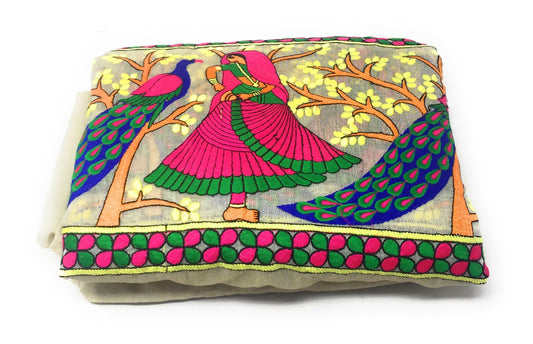Chanderi Cream Embroidered Fabric Material - By Meter