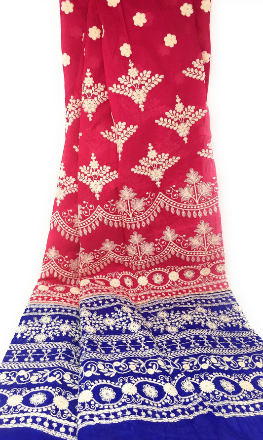 BUY 2 GET 1 Free Designer Dupatta with Embroidery in Blue Pink Gold Colour