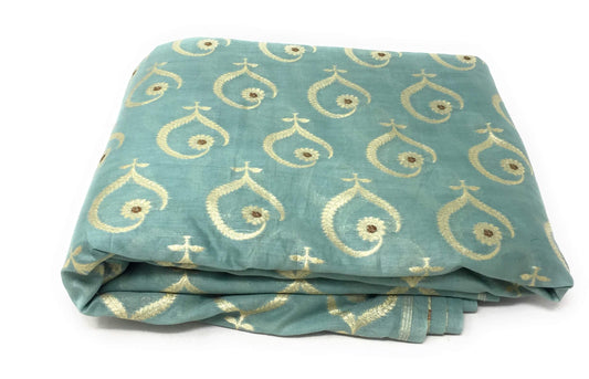Sea Blue Chanderi Material With Gold Banarasi Work