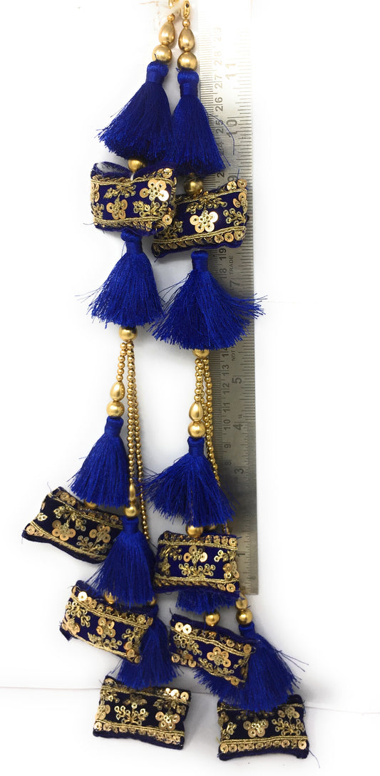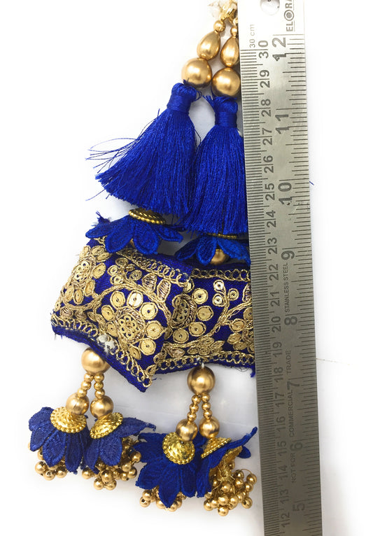 Royal Blue Embroidered Beaded Lace Trim 9 Meter