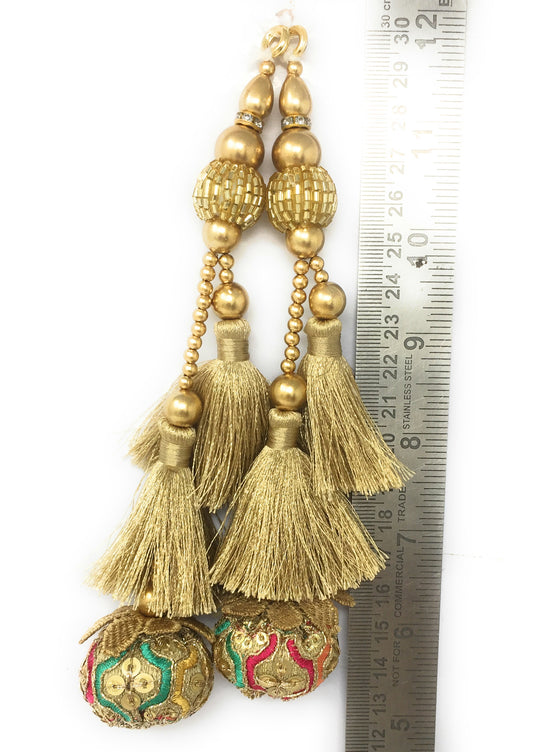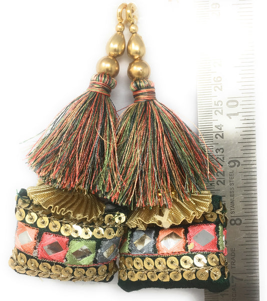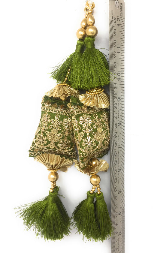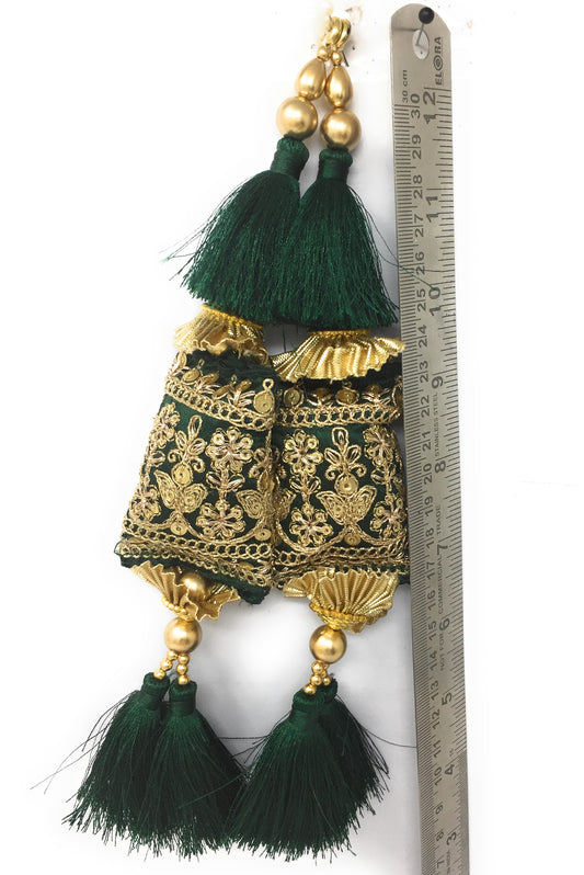 Bottle Green heavy blouse latkan with Pom Pom - Set of 2