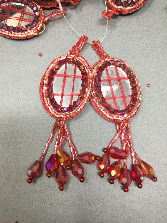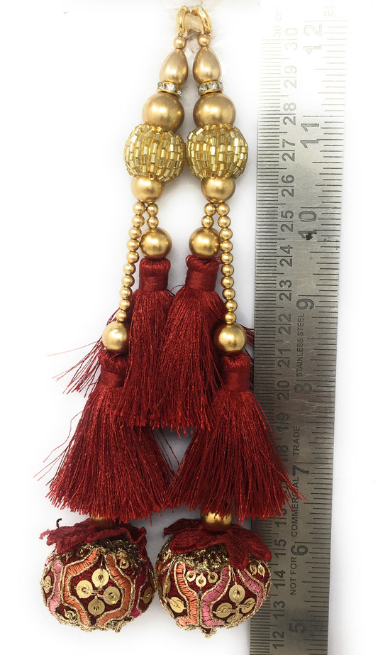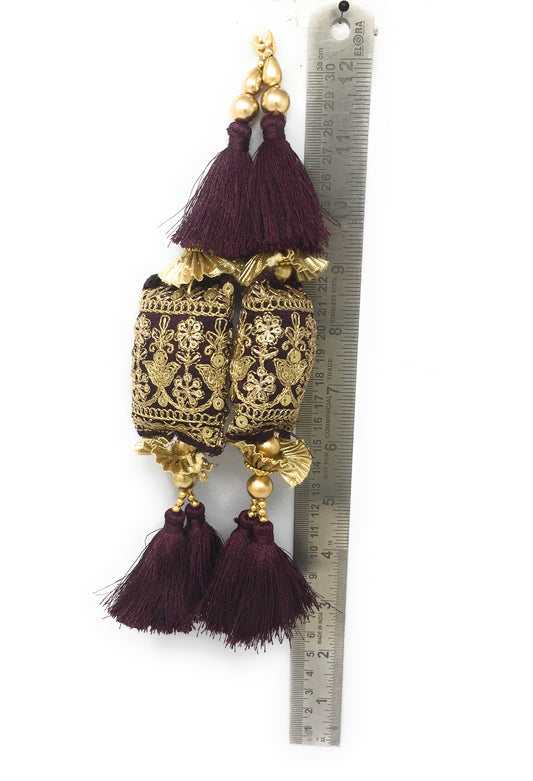 Original Mirror Blouse Latkan For Lehenga In Maroon, Set of 2