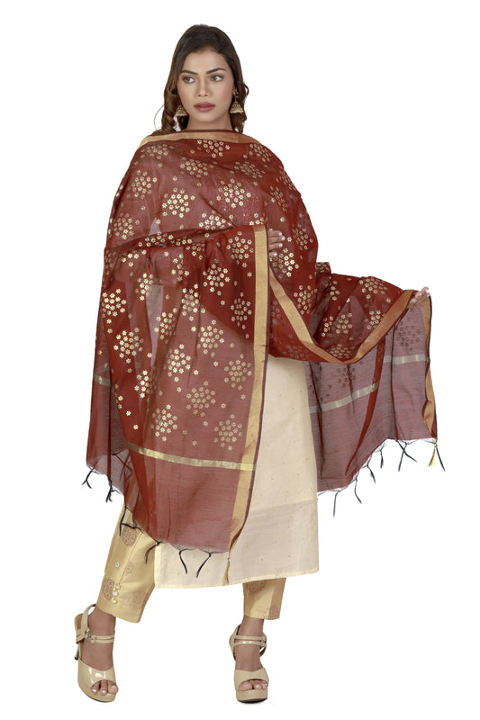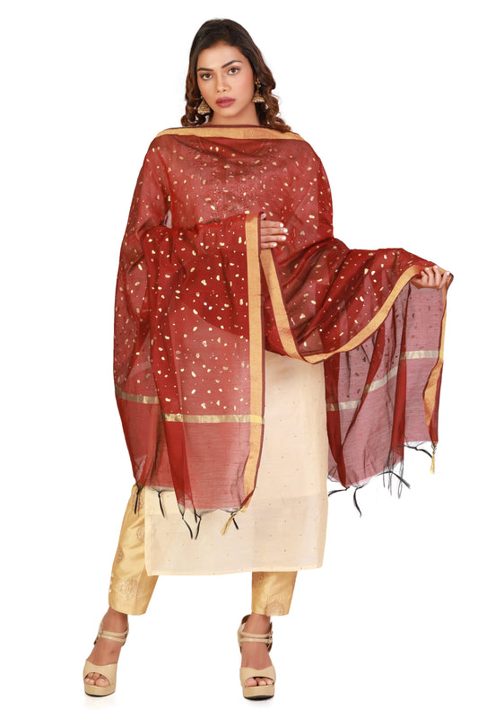 Maroon Golden Dupatta Online With Printed Gold Foil Work