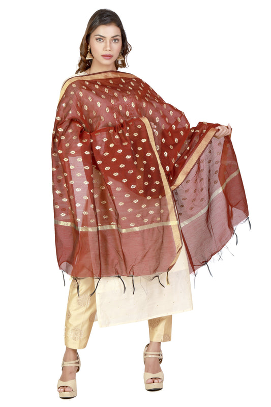 Maroon And Golden Dupatta Online With Printed Gold Foil Work