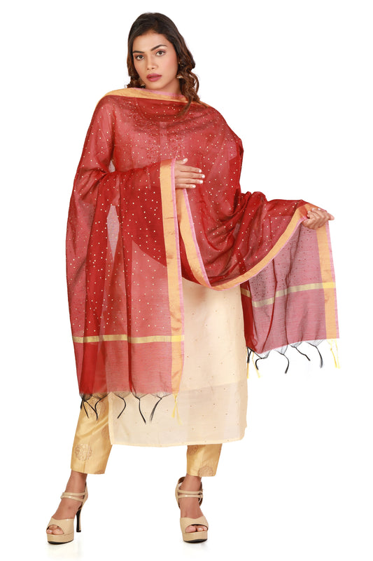 Maroon And Gold Dupatta Online With Printed Gold Foil Work