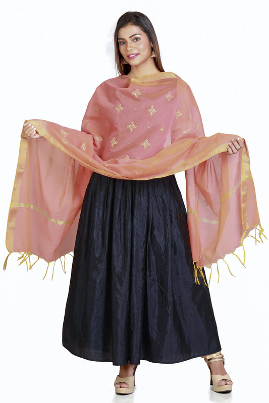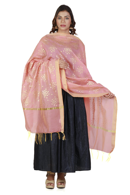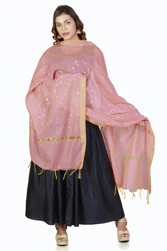 Golden Pink Dupatta With Printed Gold Foil Work