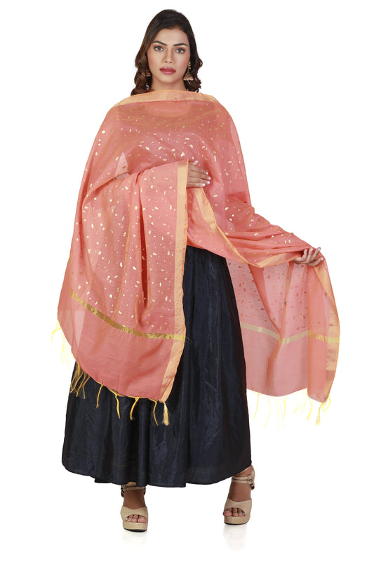 Peach Colour Dupatta Online With Printed Gold Foil Work