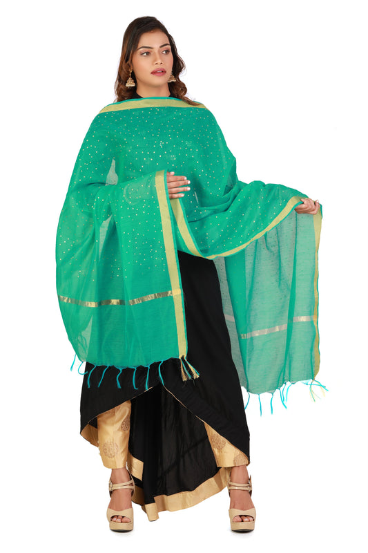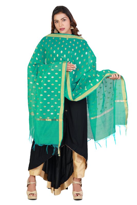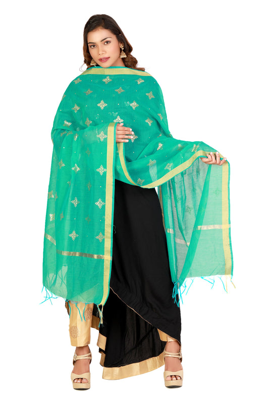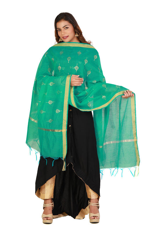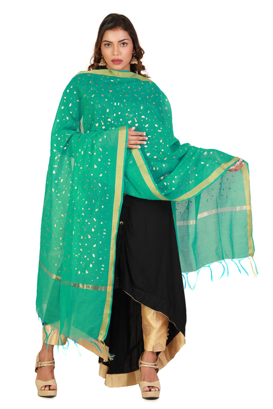 Sea Green Dupatta Online With Printed Gold Foil Work