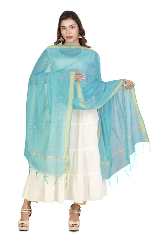 Torquoise Blue Dupatta Online With Printed Gold Foil Work