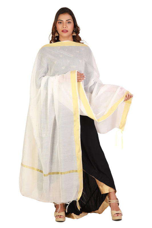 White And Gold Dupatta Online With Printed Gold Foil Work