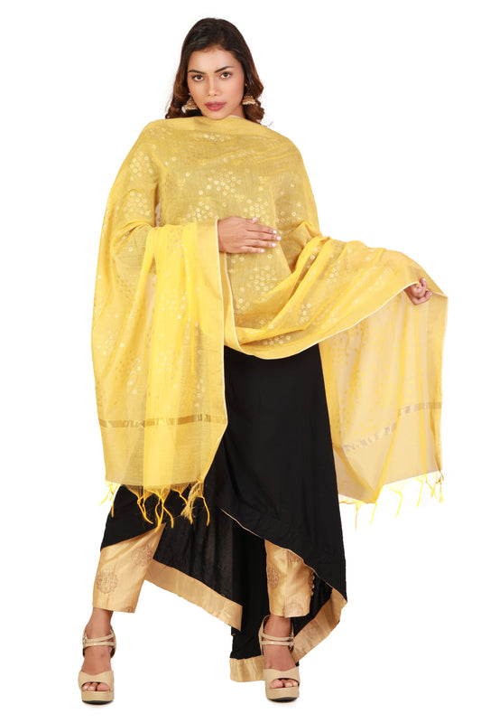 Dupatta Yellow With Printed Gold Foil Work