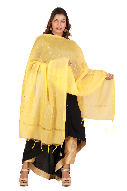 Yellow Colour Dupatta Online With Printed Gold Foil Work