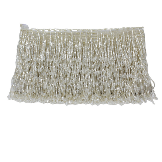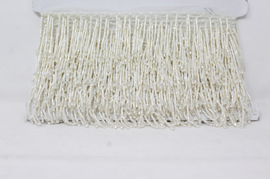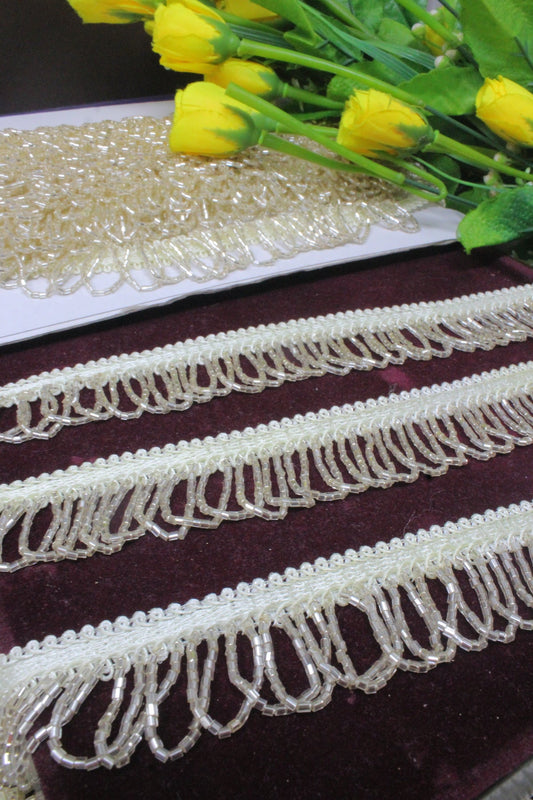 Latkan Wali Lace in White Crystal, Cutdana, Moti, Pearl - 3 Meter