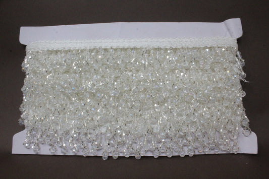 White Latkan Lace In Crystal, Cutdana, Moti, Pearl - 3 Meter