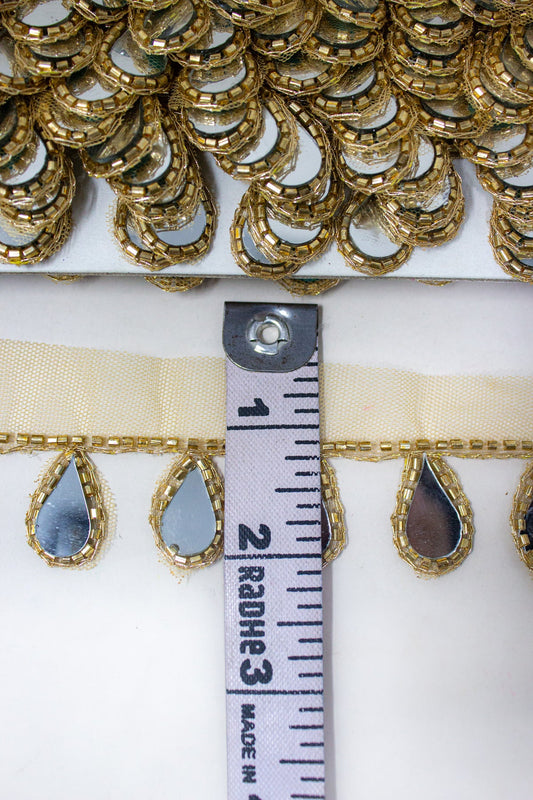 Latkan Lace In Antique Gold, Real Mirror - 3 Meter