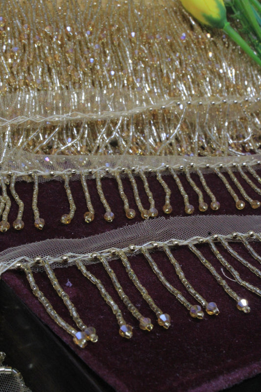 Golden Crystal Latkan Lace in Cutdana - 3 Meter