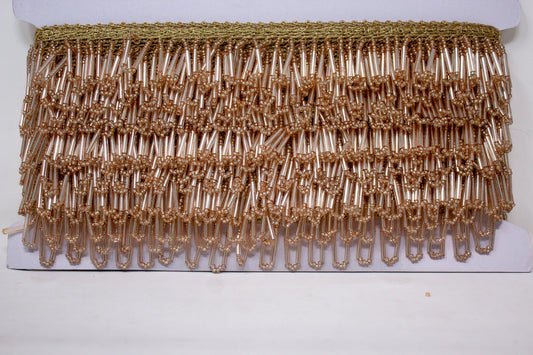 Tassel Trim In Rose Gold Cutdana Beads - 3 Meter