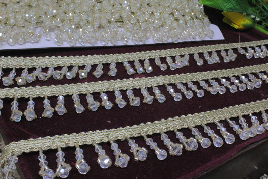 Water Gold Latkan Lace in Crystal, Cutdana - 3 Meter