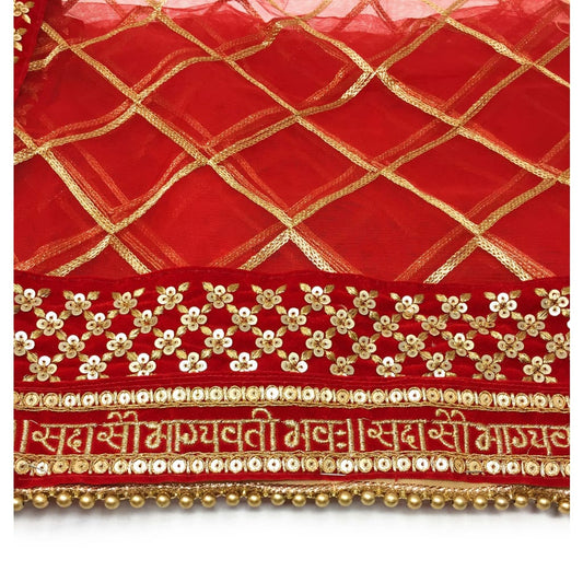 Heavy Bridal Sada Saubhagyavati Bhav Wedding Dupatta Round Beaded