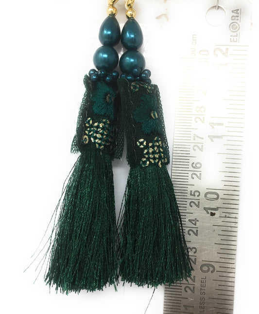 AusverkauftBottle Green lehenga side hangings - Set of 2