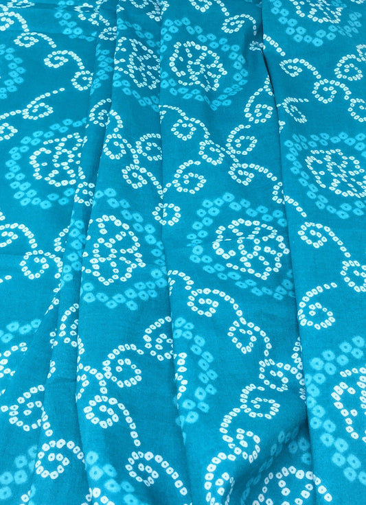 Cotton Torquoise Blue Printed Fabric Material - By Meter