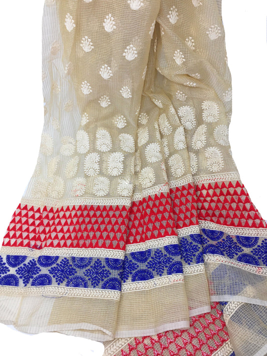 Cream Embroidered chiffon fabric