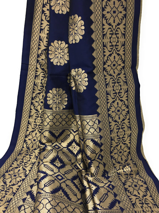 Dupatta party wear in Brocade work, Peach and Gold
