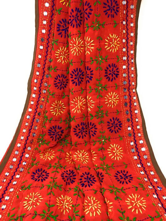 Embroidered Dupatta Multicolour Kantha Work Orange