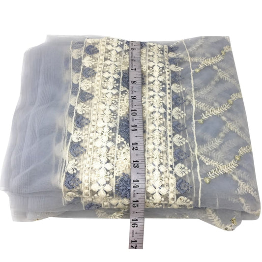 Dupatta Set Of 3 Embridered Blue Pink White Dupatta
