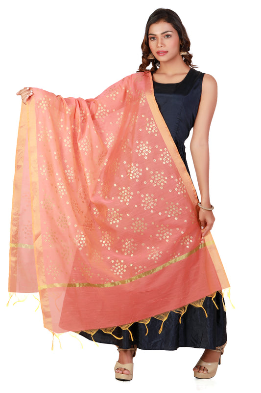 AusverkauftDupatta Peach Colour With Printed Gold Foil Work