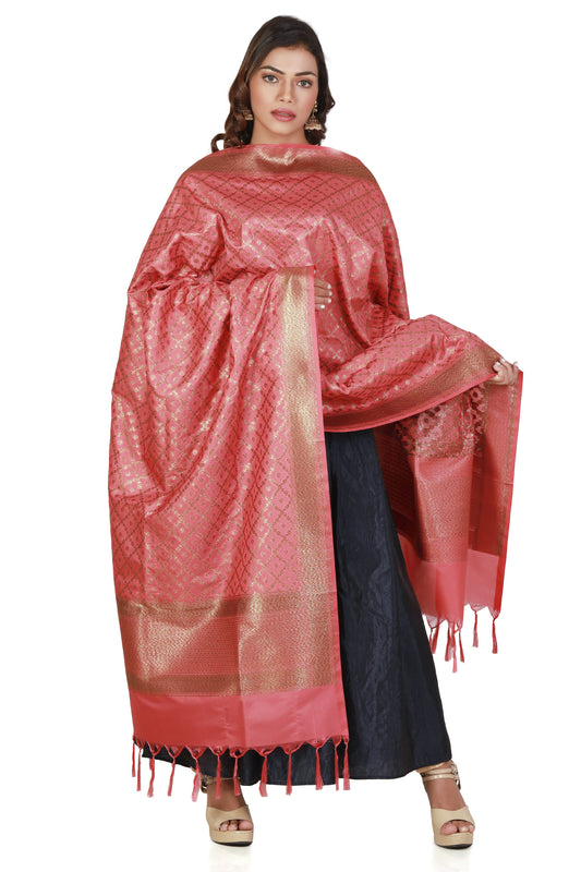 Dupatta Banarasi Silk In Dusty Pink Colour - Pure Katan SIlk